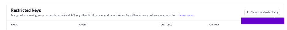 2. Cliquer ensuite sur “Create Restricted key” (clef limitée)