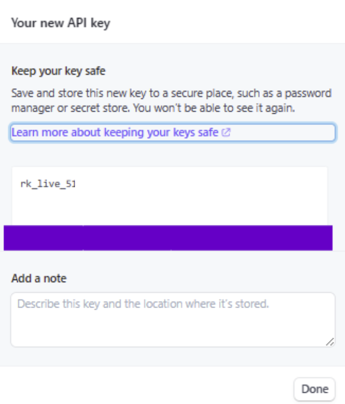 Copier la clef et nous l’envoyer (Elle commence par “Rk_live_…” ).