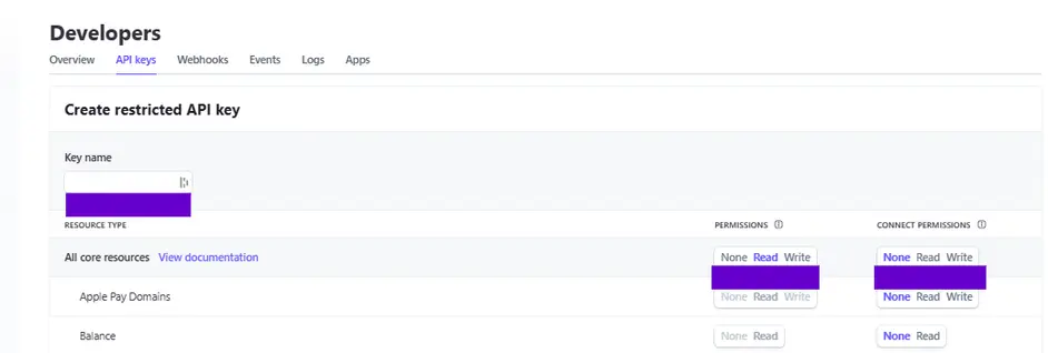 Procédure de création de clé de lecture API dans Stripe: