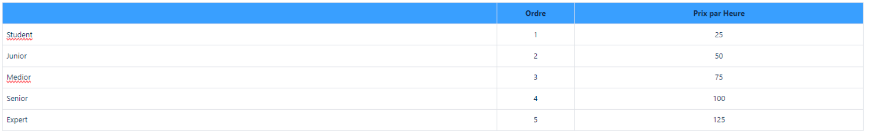 Les honoraires (€HTVA/Heure) : La grille tarifaire des honoraires selon les compétences des collaborateurs